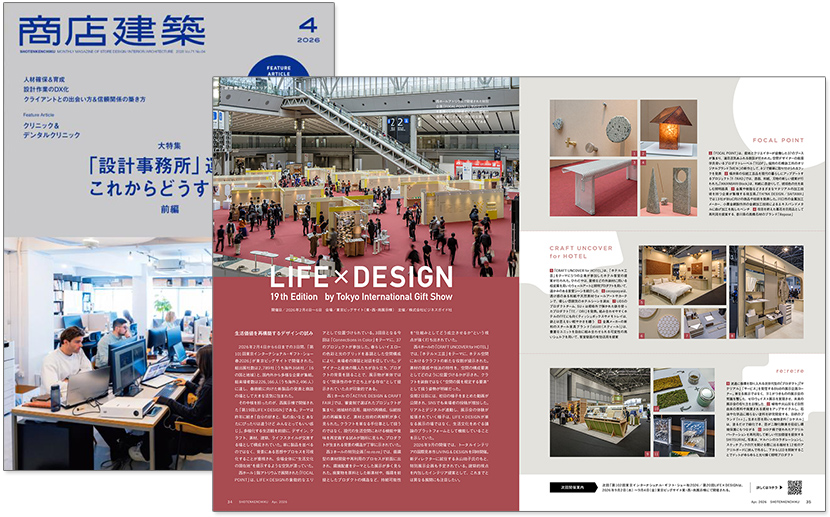 「第18回LIFE×DESIGN」の会場の模様が、商店建築2025年11月号に掲載されました。 >>> 商店建築2025年11月号