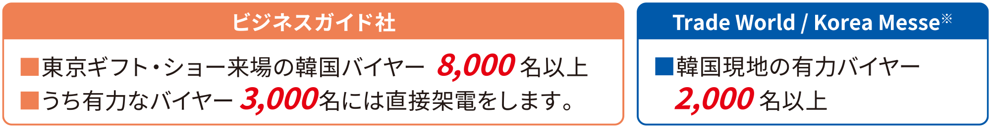 keyboard_double_arrow_right 両社のネットワークで、韓国内外から日本製品に高い関心を持つバイヤーが集結!