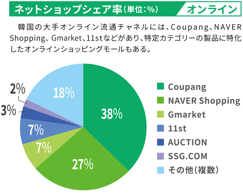 ● EC/Coupang、NAVER Shopping 、Gmarket、11st、Qoo10など