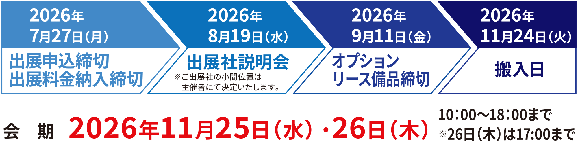 10:00~18:00(26日(木)は17:00まで)