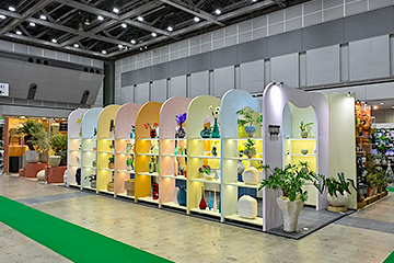 それぞれのブランドの世界観に合わせて設計。今回、デビューの「maia」についてはパステルとグラデーションを意識したトンネルをしつらえ、個性的でユニークなブランド特性を表現。 |
