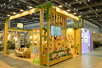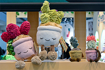 暖かいお家をイメージ。照明や什器、ソファーなどの色や配置にもこだわり、家の中に癒しをもたらす、植物をモチーフにしたぬいぐるみ「Greenhouse」が身近にある空間を表現した。 |