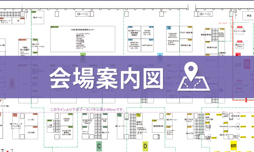 出展社名入りの会場図(ホール別)をPDFでご覧いただけます。