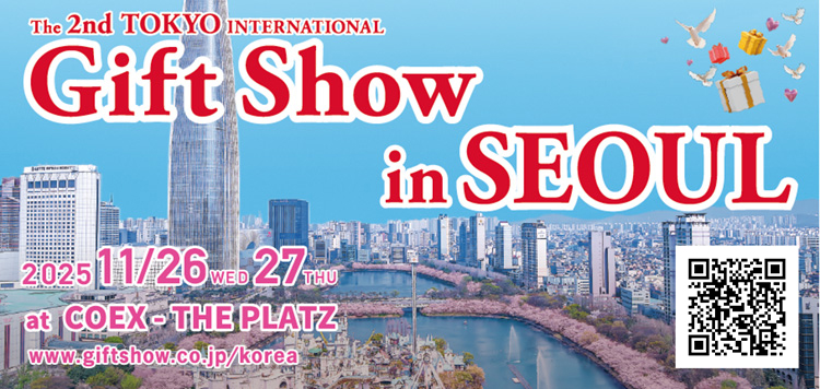 | 2025年11月26日(水)・27日(木)の2日間、パーソナルギフトと生活雑貨の国際見本市「東京インターナショナル・ギフト・ショー in ソウル」が韓国・Coex内の「The Platz」にて開催されます。 テーマは「平和と愛の贈り物〜『カワイイ』から『機能性・デザイン性』に優れた商品が大集合〜」で、機能・デザイン・「カワイイ」文化などが世界で好評の、日本の魅力的な商品を直接ご覧いただけます。ぜひ、ご来場ください。 |